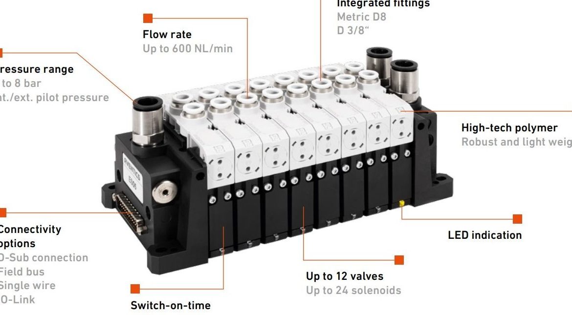 ES05 - El Sistema de Válvulas Esencial ES05 es un sistema de válvulas que ha sido diseñado especialmente para aplicaciones neumáticas estándar y automatización industrial. Simple, flexible y eficiente, sin exageración.La decisión es tuyaPara sistemas de válvulas con field bus o conexión multipolo, los cables eléctricos están integrados en la...